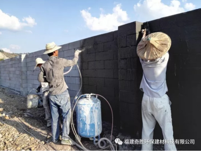 圖四:直接噴上巖安牌加氣磚專用砂漿
